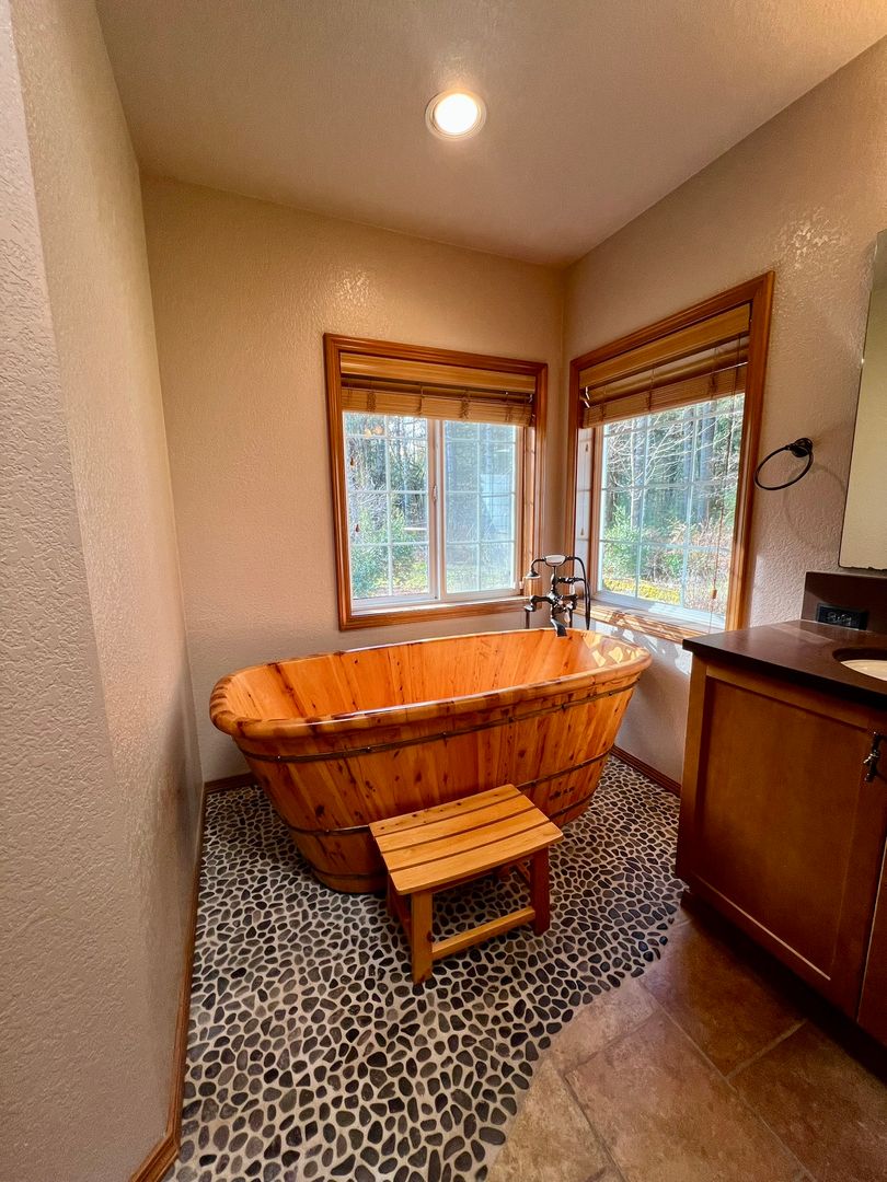 This well maintained 2 BD, 2.5 BA, 2,423 SF home sits on 5 private acres at the end of a quiet road. Living room, family room, flex room, and dining room. Kitchen includes: Refrigerator, electric range, dishwasher, and garbage disposal. Large walk-in pantry and spacious laundry room off kitchen. Washer/dryer hook-ups, appliances not included. Primary bedroom offers attached 5-piece bath and walk-in closet. Attached 2-car garage with storage areas and work space. Outside includes: Garden areas, small carport, large carport, chicken coop, wood shed, back deck, and ample parking. Wooded surroundings, no fence. Electric forced air heating and AC. Tenant to maintain all utilities and the yard. Pets allowed with homeowner approval only.