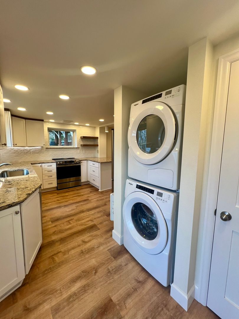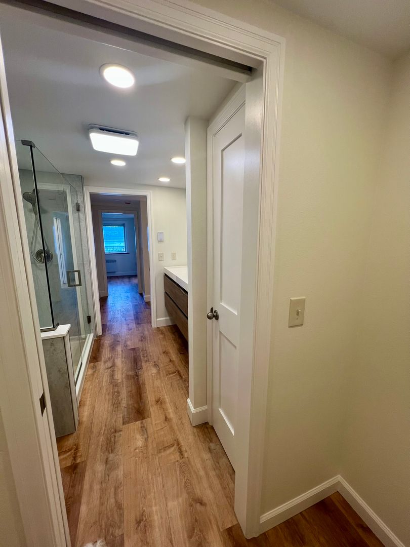 This 1 BD, 1 BA, 700 SF newly constructed, saltwater frontage residence is just minutes from downtown Olympia and Squaxin Park. High-end finishes throughout! Main living area with electric fireplace is open to the kitchen. Appliances include: Refrigerator, electric range, dishwasher, garbage disposal, and washer/dryer. Pass through bedroom has room for a queen bed. Kitchen and bedroom have western exposure which allows for beautiful sunset views. Large closet in hallway. Bathroom offers double sinks, large walk-in shower, towel warmer, and 2 closets. The fenced garden and patio outside the front door is private to the tenants. Tenants also have shared access to the full yard, landscaped gardens, dock, and beach. Electric heat. Tenant pays water, power, and garbage. Onsite groundskeeping included (5 days a week) - The groundskeeper maintains the exterior/yard, takes out the trash, and will receive packages during business hours. Parking available behind fence, street parking open. Main house above apartment remains vacant the majority of the year. Pets allowed with approval only.