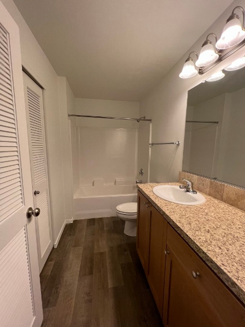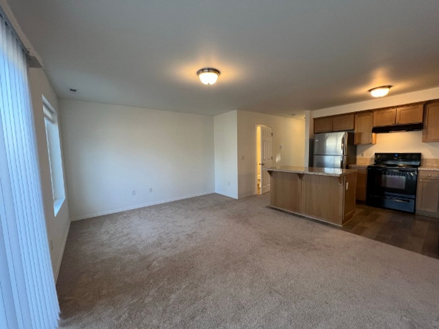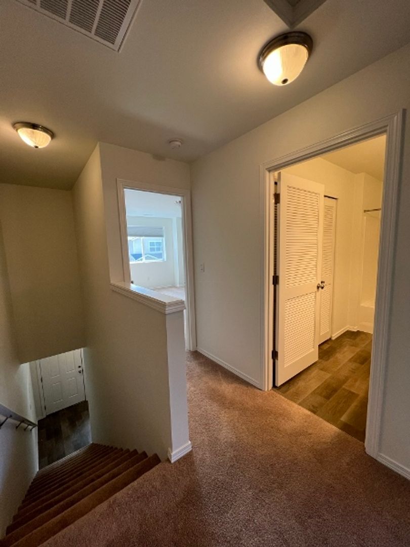 3 BD, 1.5 BA, 1,212 SF 2-story duplex unit. One car garage and private back yard with patio. Kitchen includes: Refrigerator, range, and dishwasher. Kitchen is open to living space with eat-in bar/island. 1/2 bath and bedroom downstairs. Primary and third bedroom, full bath and laundry upstairs. W/D appliances included. Forced Air Heating/AC. Tenants pay all utilities. Tenants to maintain back yards, owner maintains front yards and common areas. No pets allowed. NO STREET PARKING.